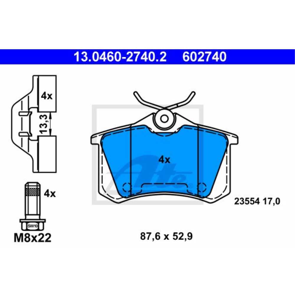 Anzahl der Schrauben 4 Breite 87,6 Bremssystem Lucas / TRW Dicke/Stärke 17 Einbauseite hinten Info mit Zubehör Info 2 mit Bremssattelschrauben Höhe 52,9 Prüfzeichen E1 90R-02A0333/0218 Verschleißwarnkontakt nicht für Verschleißwarnanzeiger vorbereitet exkl. Verschleißwarnkontakt